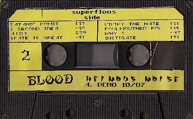 BLOOD was formed by Eisen, Taki, Geier and Radtke in March 1986 as a fun-noise Band. We recorded 3 Demos during this noisy time. In June 1987 VENTILATOR joined BLOOD and the songs got more structure and the music became serious. The 4th Demo “HEINOUS NOISE“ was recorded in Oct.1987, the 5th Demo “SPASMO PARALYTIC DREAMS“, where Bestial Bernd used the micro in Feb.1988 and the 6th Demo “NO REGRET“ in Aug. 1988 with Chuck on vocals. After that we found a new Singer called Martin. At the beginning of 1989 we got our first record-deal with the US-Label “WILD RAGS RECORDS“ the release of our debut LP “IMPULSE TO DESTROY“ was in July 1989.