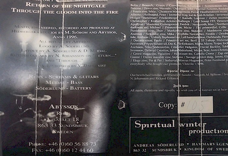 Black metal band from Sweden which one demo in 1996. Their first full length was also released in 1994 titled, Together We Summon the Dark