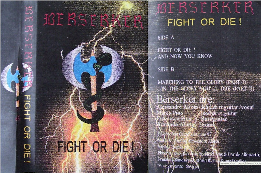 Berserker was formed in 1989 by Alessandro Alioto, who in that year recorded the first demo tape "Berserker", playing all instruments himself. In 1990 three members were added and 1991 saw the release of a rehearsal tape called "1991". The following year they recorded "The Drakkarsaga", followed by 1993's "Emperor of Destruction" demo. In 1994 Armando Alioto, Alessandro's brother, signed on as drummer, at which time they released the rehearsal tape "Live", recorded at their gigs. In 1995 yet another demo was recorded, titled "Skaeggox", followed by "Death in Your Eyes" in 1996. In July of 1997 Berserker recorded two more demo tapes "Fighting the Fear" and "Fight or Die!". In 1999 Alessandro and Armando recorded the first Berserker demo CD called "Masters of Steel", on which Alessandro performed all guitars, bass, and vocals. In 2003 the Alioto brothers recorded their first debut album “Blood of the Warriors”, but they'll must wait till 2006 when the well-known Italian label “My Graveyard productions” to sign them and in November of 2007 their album come out. Berserker's sound is inspired by Traditional Power and Epic Metal from the mid 1980's.
