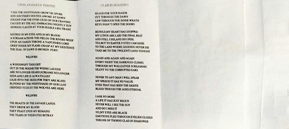 Xeroxed covers w/ lyrics. Studio tapes. Mikael Stanne from Dark Tranquillity did the vocals and logo for the demo