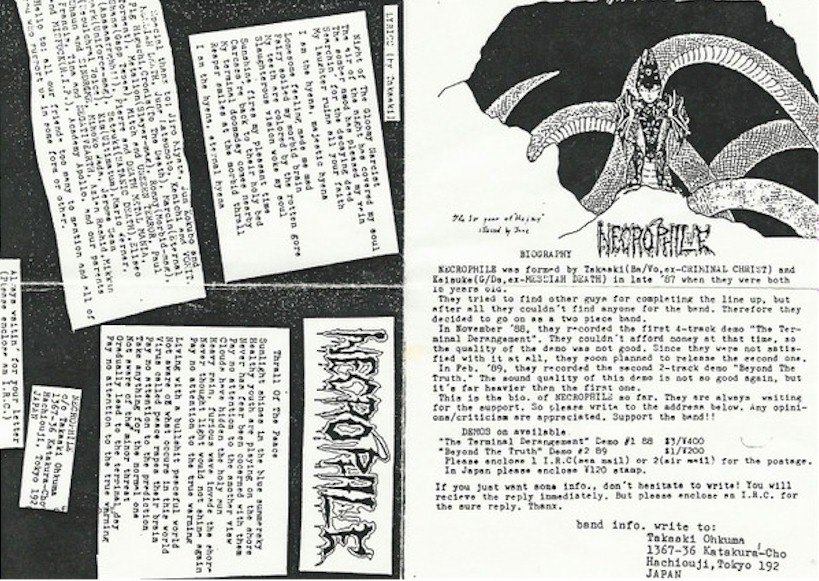 Black Metal band from Tokyo started by Takaaki and Keisuke in 1987. They released their first demo "The Terminal Derangement" in 1988. In 1989, they released their second and last demo called "Beyond the Truth". A split-vinyl with the Singapore band Abhorer was released in 1991 by Decapiteted Record, and the same year, an EP, "Dissociated Modernity" was released by Baphomet Records.