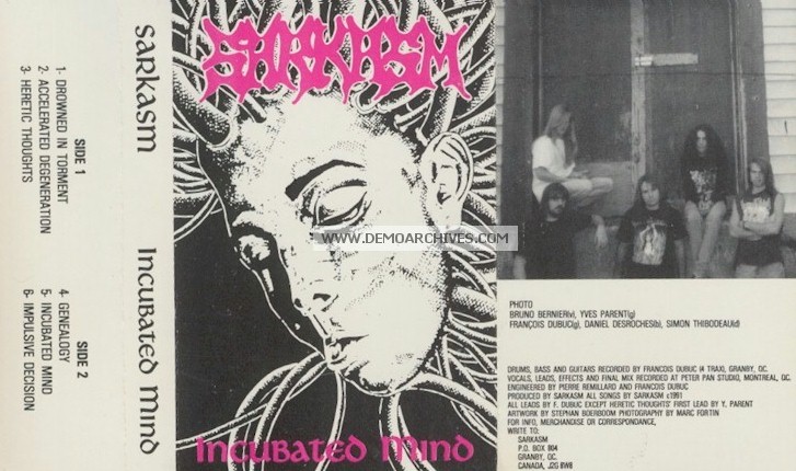Xeroxed covers and regular tapes. Released under their first name of SARCASM but changed it afterwards