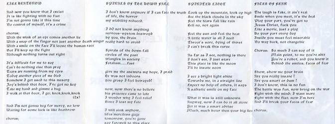 Xeroxed covers. Regular Tapes. Lyrics on back