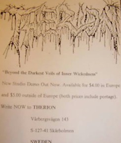 Back in the year 1987, Christofer Johnsson did form the metal band Blitzkrieg in Upplands Väsby, a suburb of Stockholm. What genre they played is discussed, as their influences mostly were major thrash bands but they sounded more like the big extreme bands of that era. He played the bass and sung the vocals. The line-up was completed with Peter Hansson on guitar and Oskar Forss on drums. This line-up however, only lasted for two gigs, and they decided to split up in early 1988. A few months later Chris started playing guitar instead, and influenced by Celtic Frost he called the band Megatherion and played death metal. Peter Hansson played guitars in the new band too. Later Oskar returned and the bassist, Erik Gustafsson joined. Erik had just left another Swedish underground death metal group, Dismember. After a short while, the name was changed to Therion. With this line-up the two demos, the first EP and the first full-length were recorded. On Paroxysmal Holocaust Matti Kärki, later Dismember singer, did the vocals though. Beyond the Darkest Veils of Inner Wickedness was the first Therion release Chris sung. The EP, Time Shall Tell, was in deed nothing more than a demo recording that got released as a record instead of cassette. After the 1000 copies had sold, the bookstore bootlegged another 1000. Shortly after, they signed to Deaf Records where they released Of Darkness. This album consisted of songs that Chris had written in the eighties.