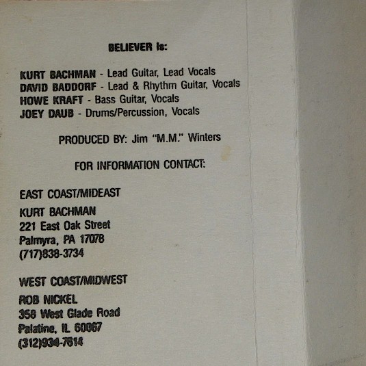 Believer was formed in Colebrook, Pennsylvania in 1986 by drummer Joey Daub and guitarist-vocalist Kurt Bachman. The band was joined by Howe Kraft (bass) and David Baddorf (guitar). They began playing melodic metal and released the cassette The Return in 1987. Later, Believer changed its style to thrash metal, as the band said: ”We realized that we could write thrash better than we could write anything else”. In high school, the band leader Kurt Bachman met Scott Laird, who was studying his first year as a music instructor. When Believer was recording the title track for its first studio album, the band asked Laird to compose an orchestral intro for the song. In 1989, Believer was signed to R.E.X. Records which published Believer's first album, Extraction from Mortality. The album was mostly distributed to Christian bookstores but quickly gained popularity for Believer who soon became recognized as one of Christian metal's leading groups.  The song "Not Even One" appeared on Roadrunner Records' compilation At Death's Door in 1990 which was composed mostly of death metal bands. Writer Jeff Wagner noted that Believer's thrash-leaning sound was intense enough to hang amidst the heavier, more brutal and decidedly non-Christian metal bands on the compilation. With the appearance, Believer entered the general metal scene and was subsequently signed by Roadrunner