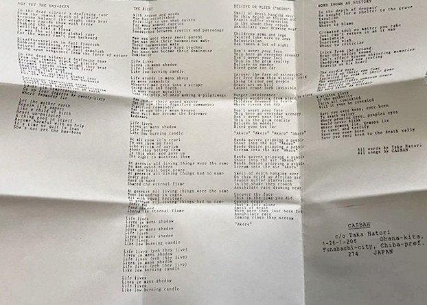 Xerox Covers. A4 size xeroxed foldout sleeve with lyrics printed inside.