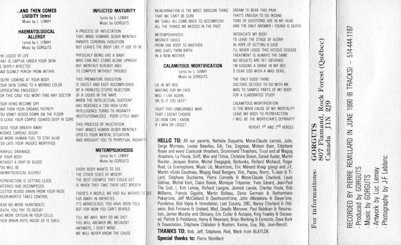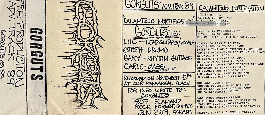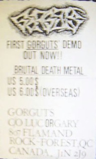Highly regarded and innovative Jazz flavored Death Metal act GORGUTS was founded in Québec during 1989. In 1990 the band released a pro-demo called '...And Then Comes Lividity', which caught the attention of some record companies and they were soon signed to Roadrunner Records. The group at this stage comprised vocalist / guitarist Luc Lemay, bassist Eric Giguere, drummer Stephane Provencher with Gary Chouinard on second guitar. They released their debut; 1991's Scott Burns produced 'Considered Dead', recorded at Morrisound Studios, in Tampa, Florida.